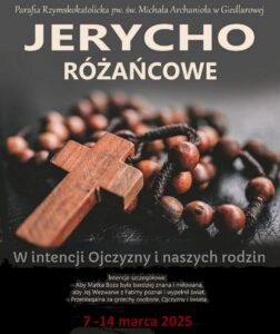 JERYCHO RÓŻAŃCOWE GIEDLAROWA 2025 Od 7 do 14 marca – w naszym kościele trwa nieustanna modlitwa różańcowa za naszą Ojczyznę Modlitwa w tych dniach jest przez całą dobę Zachęcamy do tej modlitwy wszystkich, którzy pragną pokoju. Można o każdej porze dnia i nocy przyjść do naszego kościoła i się włączyć w tę modlitwę. Chorych i …